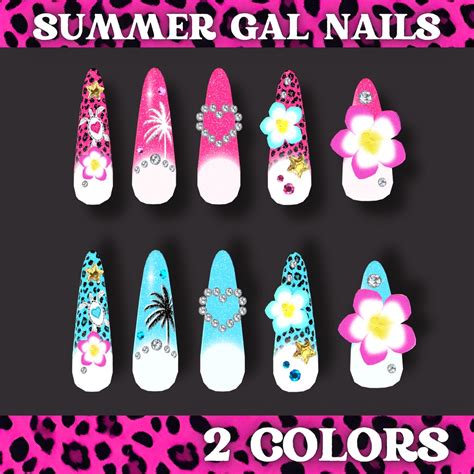 Gal nails summer is a unique and trendy nail art design that features vibrant colors, bold patterns, and playful elements inspired by the summer season.
