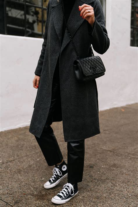 Pair a flowy lace dress with black Converse for a surprising and sophisticated combination. The delicate lace will balance out the casual sneakers, creating an effortlessly elegant look. Accessorize with a statement necklace and a sleek clutch for a polished finish.
