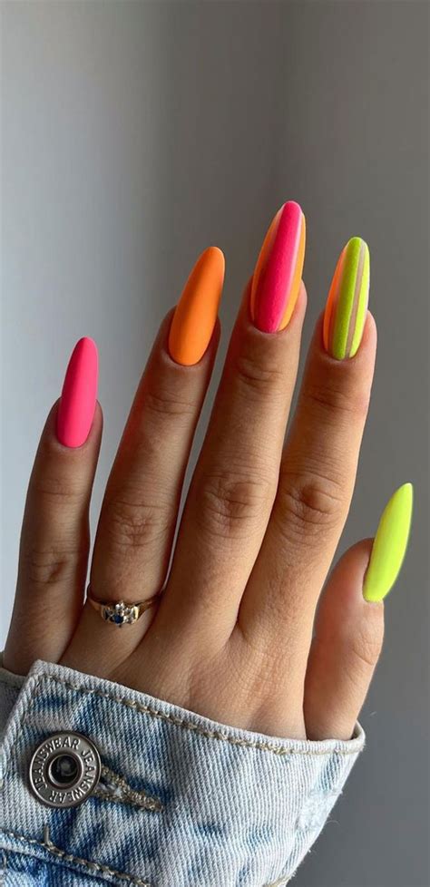 Neon colors are the epitome of summer nails electric. They scream fun, vibrancy, and a touch of rebellion. Imagine nails painted in shocking pink, electric blue, or lime green – shades that demand attention and radiate an infectious energy.